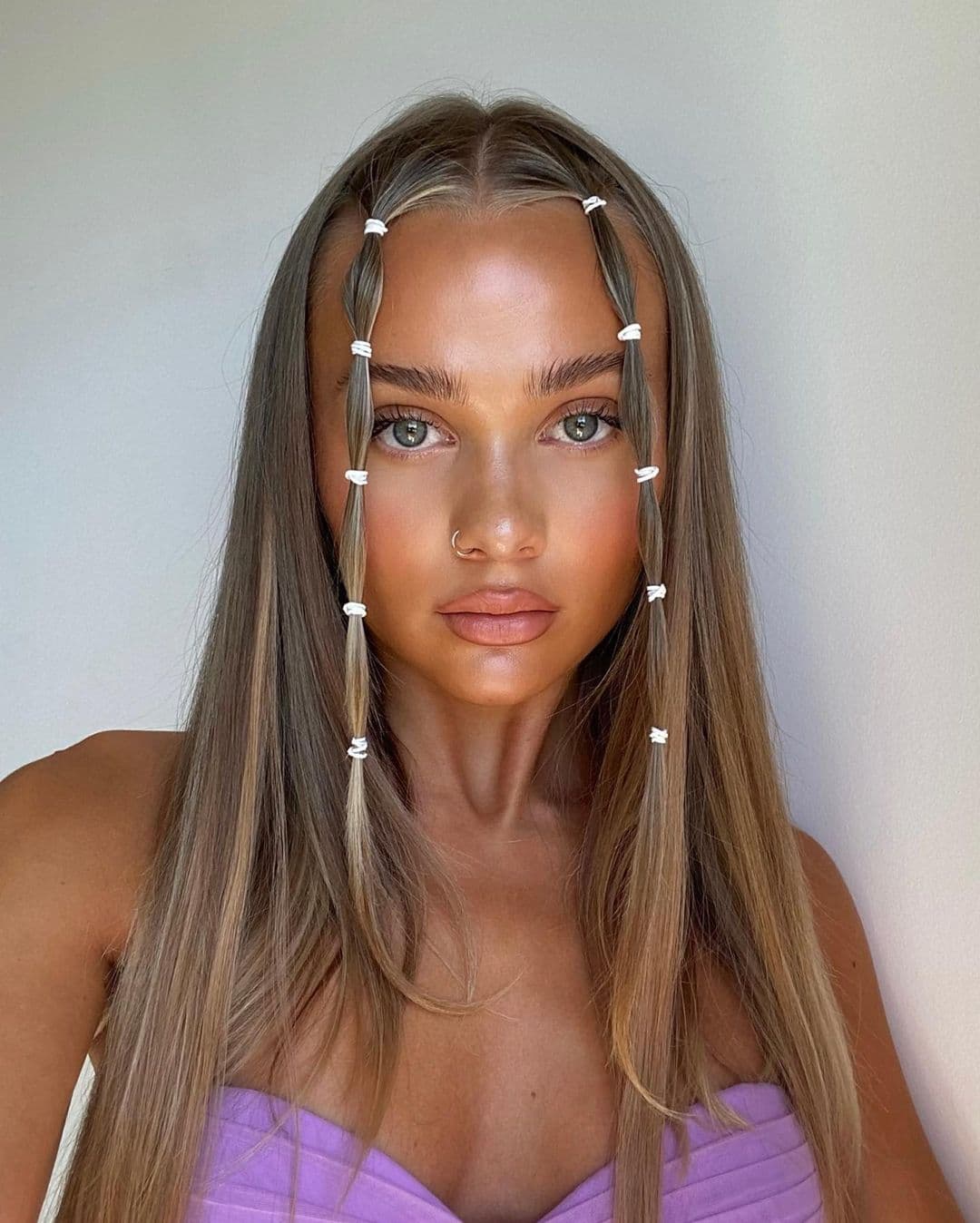 การมัดผมให้เป็นเหมือนบับเบิ้ลแบบฟองอากาศแบบนี้ นับเป็นอีกกิมมิกที่ทำให้ผมแกละดูว้าวมากขึ้นเท่าตัว วิธีการทำนั้นเริ่มง่ายๆ เพียงมัดผมเป็นหางม้าสูง 2 ข้าง จากนั้นมัดผมให้เป็นปล้องหลายๆ ชั้น และดึงแต่ละข้อที่มัดให้พองออกเป็นบับเบิ้ล ปิดท้ายด้วยการเพิ่มดีเทลให้ทรงผมดูอินเทรนด์มากขึ้นด้วยการแบ่งผมช่อหน้ามาถักเป็นเปีย Baby Braids