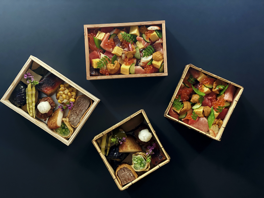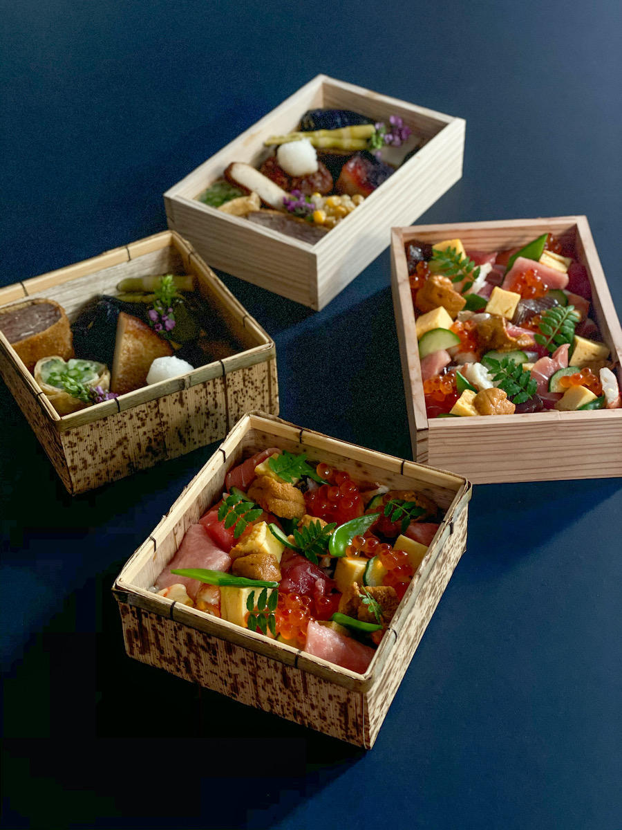 หลังจากรับเบนโตะแล้วเราได้ลิงก์รหัสเพื่อเข้าร่วมชมอินเทอร์แอคทีฟดินเนอร์ผ่านแอปพลิเคชั่น Zoom ซึ่งเปรียบเสมือนหน้าต่างบานสำคัญที่เชื่อมต่อตัวเราซึ่งนั่งรับประทานอาหารอยู่ที่บ้าน ให้สามารถพูดคุยแบบสดๆ กับเชฟที่โอซาก้า และเพื่อนๆ ที่มาเข้าร่วมดินเนอร์ในค่ำคืนเดียวกัน เชฟเริ่มลงมืออธิบายถึงแรงบันดาลใจของอาหารที่อยู่ตรงหน้าเรา พร้อมแนะนำให้ผู้ร่วมดินเนอร์ค่อยๆ ชิมแต่ละส่วนประกอบของเบนโตะอย่างเข้าใจถึงที่มา เบนโตะในวันนี้มาด้วยกันทั้งหมด 2 กล่อง ได้แก่ เบนโตะอาหารเรียกน้ำย่อย และเบนโตะข้าวหน้าปลาดิบต่างๆ ที่คัดสรรวัตถุดิบมาเป็นอย่างดี เสิร์ฟพร้อมพุดดิ้งยูสึกลิ่นสดชื่น (ระหว่างนี้ขอให้คลิกไปชมรีวิวดินเนอร์ในครั้งนี้ในรูปแบบวิดีโอที่นี่)