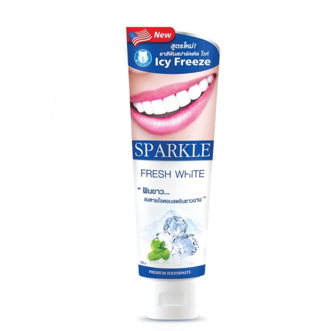 ยาสีฟันตัวแรกมาจากแบรนด์ Sparkle ที่ขึ้นชื่อเรื่องการฟอกฟันให้ดูขาว กระจ่างใสขึ้น ประกอบด้วยอณูของผงขัดฟันที่ละเอียด จึงช่วยขัดฟันให้ดูขาวขึ้นได้ ช่วยลดคราบชา กาแฟที่ทำให้ฟันเหลือง นอกจากนี้ยังมีวิตามินซีที่ช่วยต้านอนุมูลอิสระ บำรุงเหงือกและลดปัญหาเลือดออกตามไรฟัน พร้อมทั้งนวัตกรรม Icy Freeze ที่ช่วยมอบความเย็นและกลิ่นลมหายใจที่สดชื่นยาวนานยิ่งขึ้น